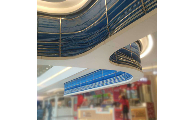 擋煙垂簾垂壁根據(jù)設(shè)計(jì)要求和現(xiàn)場(chǎng)實(shí)際情況采取如下施工順序:首先,搭設(shè)腳手架一放線一打眼--上脹栓一焊骨架。第二,吊件一安裝骨架…